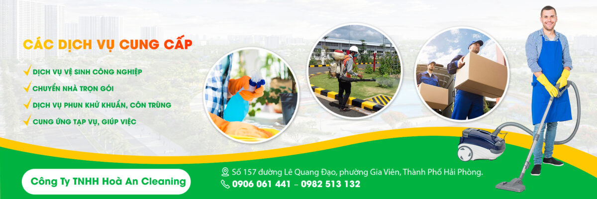 Trong thời đại công nghiệp hiện nay, nhu cầu về dịch vụ dọn dẹp nhà cửa sạch đẹp và thoáng mát để mang lại một tinh thần sảng khoái nhằm mang lại sức khỏe và hiệu quả cao trong công việc, học tập là một nhu cầu thiết yếu của cuộc sống. Để đáp ứng nhu cầu của Quý khách hàng, Công ty Vệ sinh công nghiệp Hoà An Cleaning với chức năng hoạt động tư vấn và cung cấp các dịch vụ dọn dẹp nhà cửa Hải Phòng
